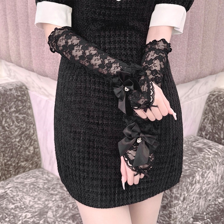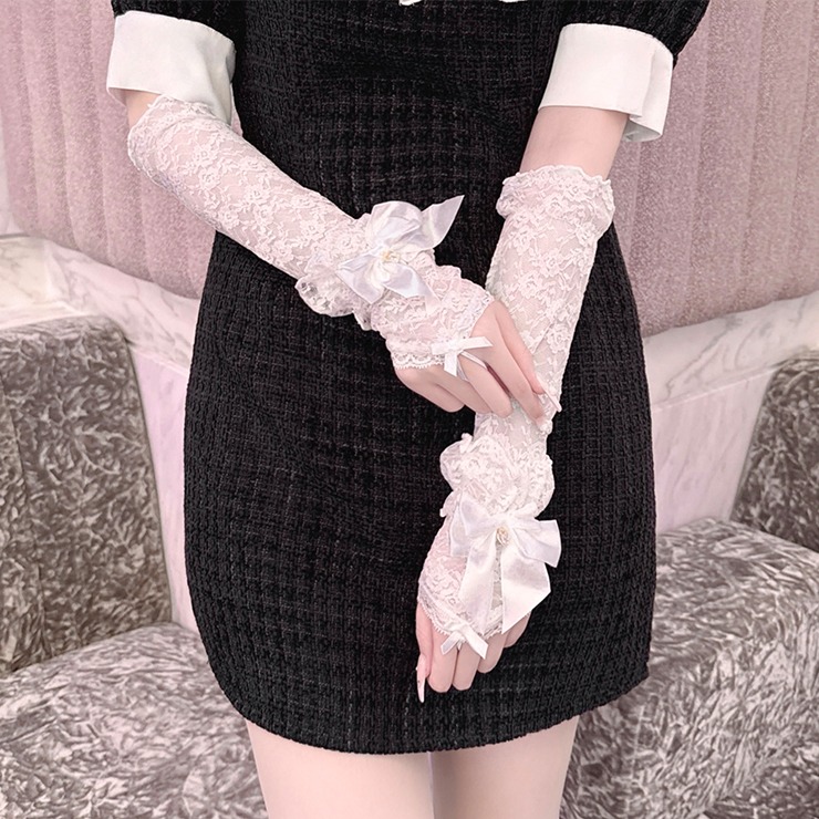 花柄レースデザインに大きなリボンモチーフが特徴のショート丈アームカバーです◎