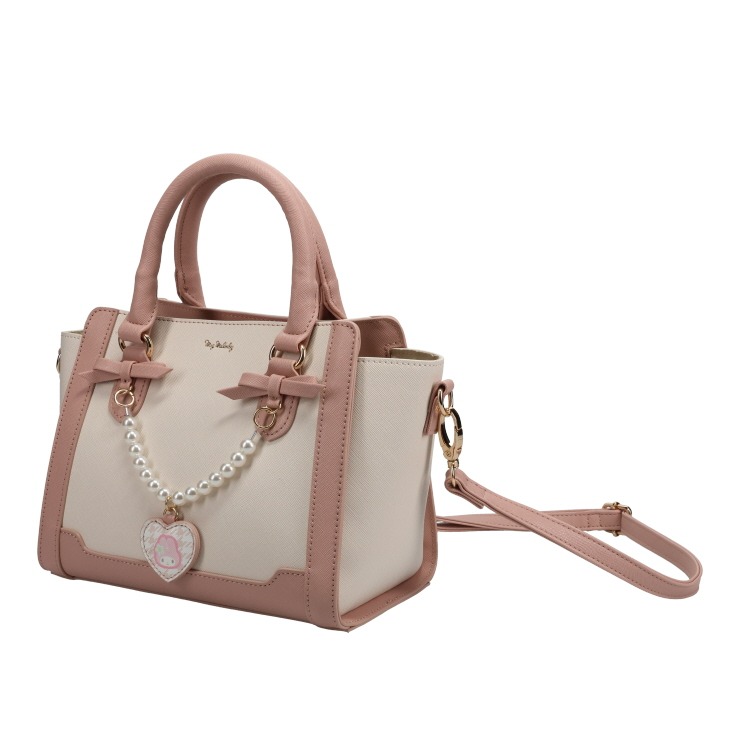 「マイメロディ」の千鳥柄ハートチャームがワンポイントのトートバッグ。