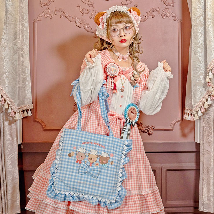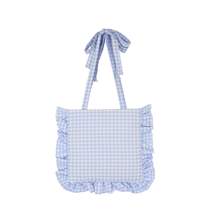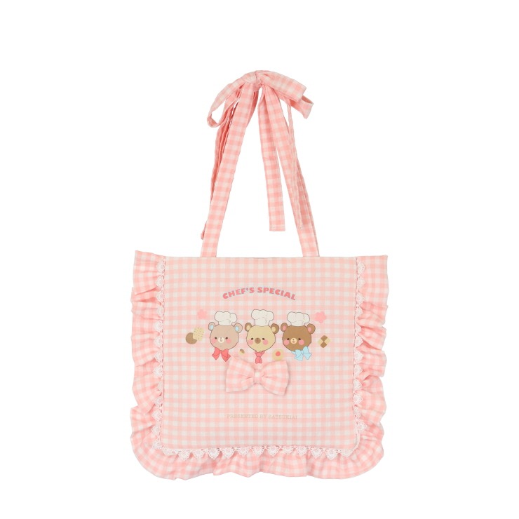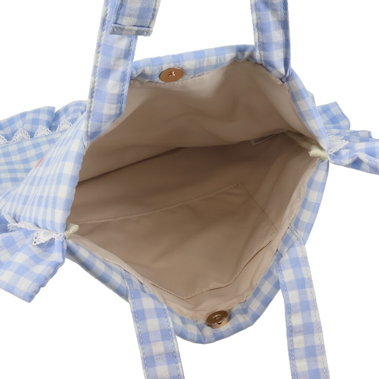 チェック柄・フリル・レースがかわいいトートバッグ。