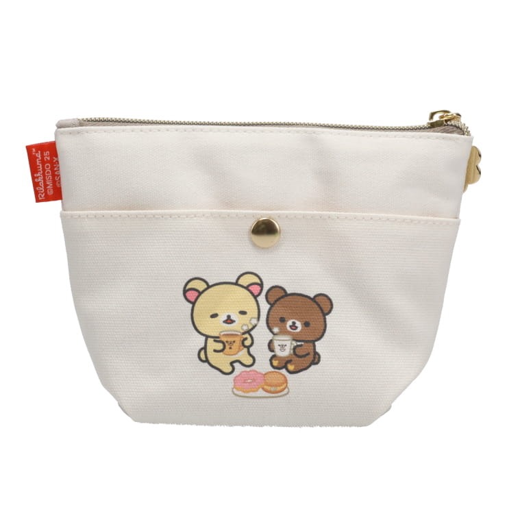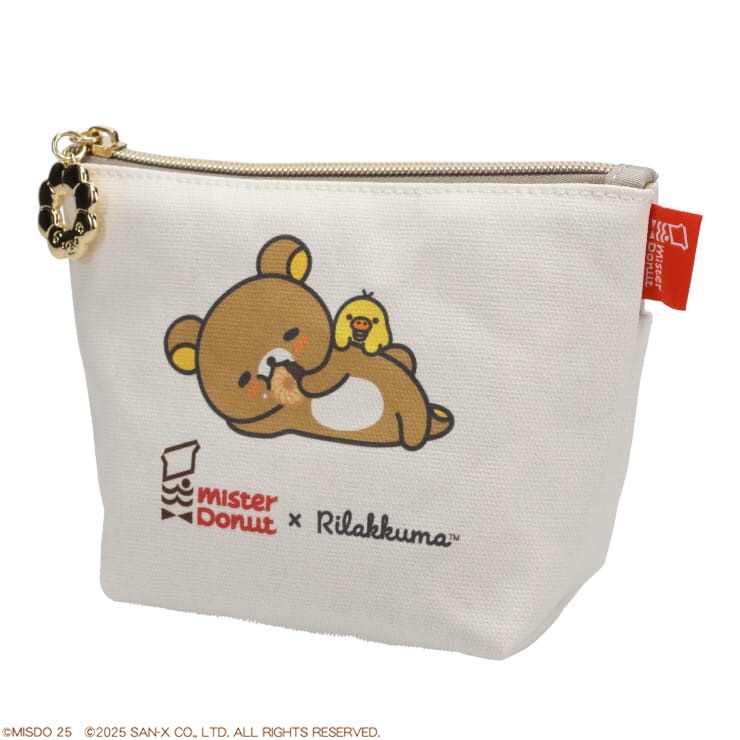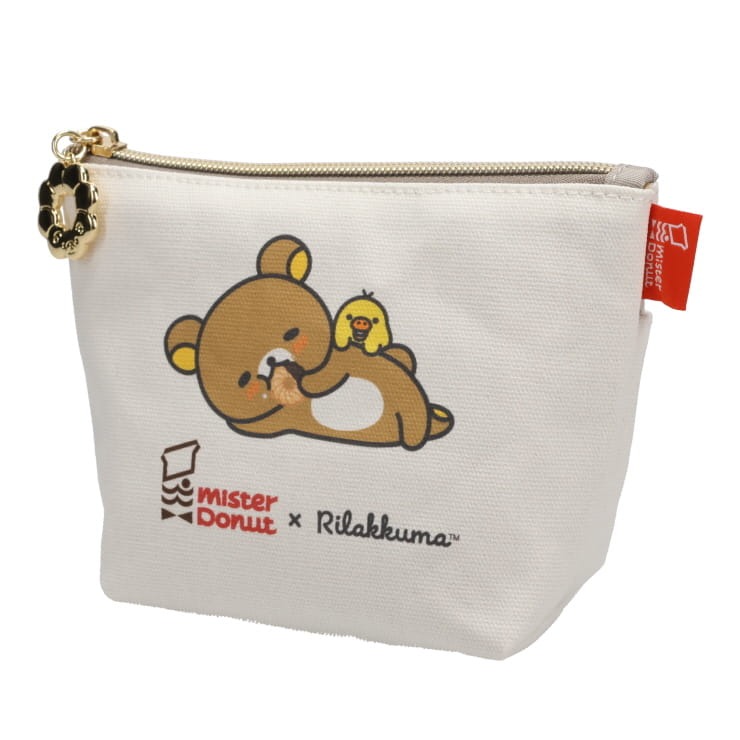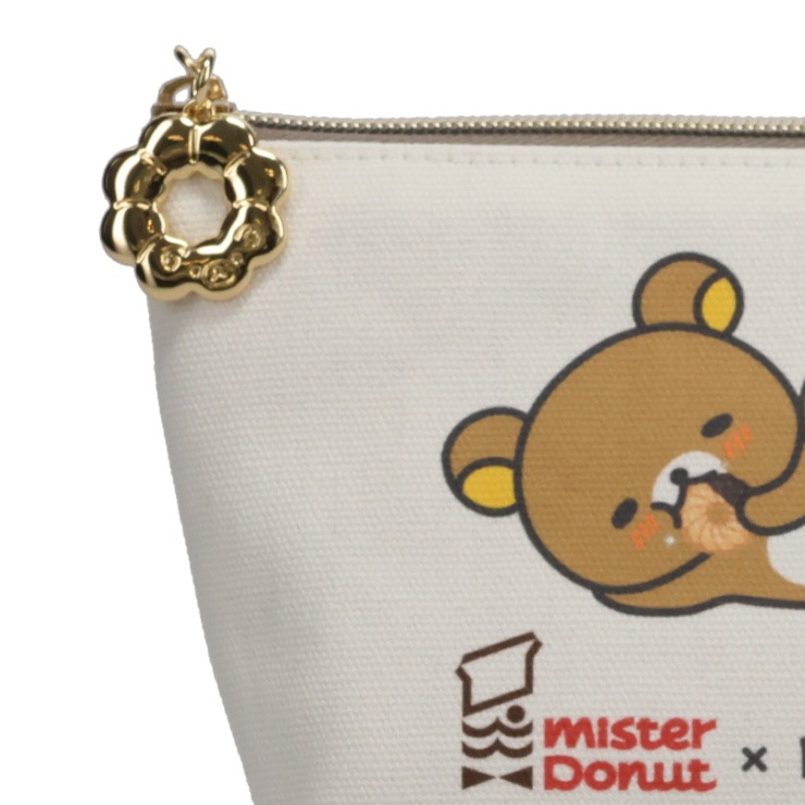 リラックマとミスタードーナツがコラボした、おしゃれな帆布性のポーチです。