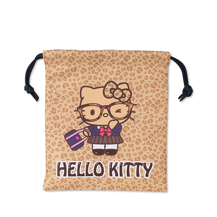 メガネをかけたギャルキティちゃんの巾着。