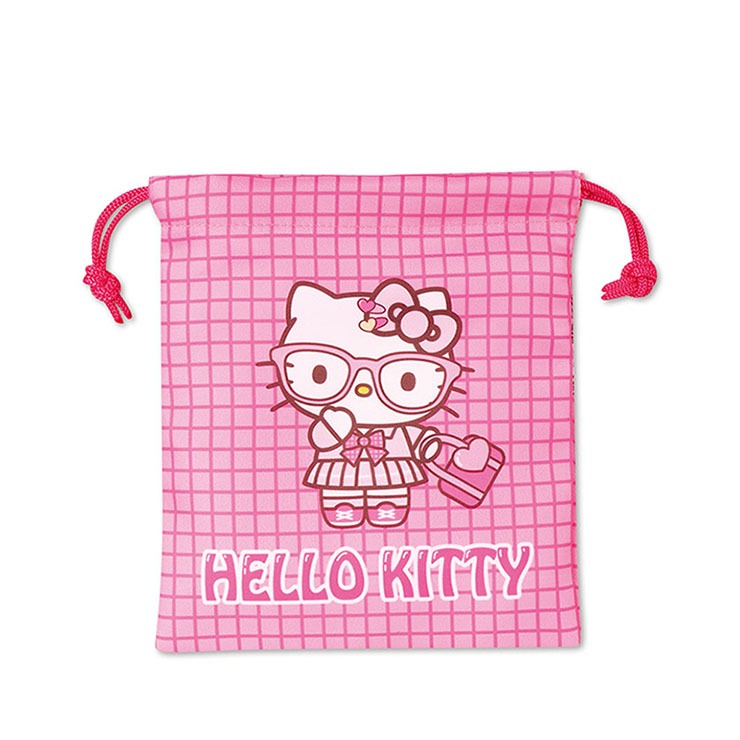 メガネをかけたギャルキティちゃんの巾着。
