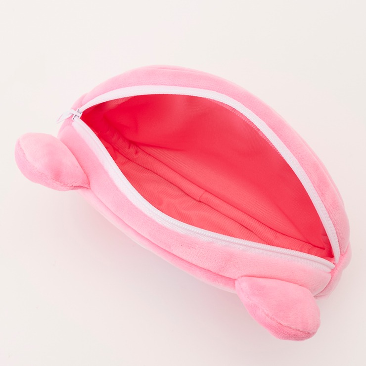 ファスナー式の開閉、ソフトボアで柔らかな手触りのポーチ。