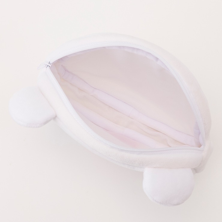ファスナー式の開閉、ソフトボアで柔らかな手触りのポーチ。