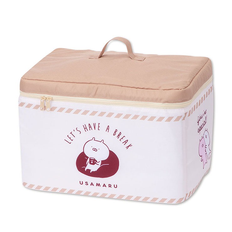 蓋はファスナーで閉まり、持ち手が付いているので持ち運びも簡単です。
