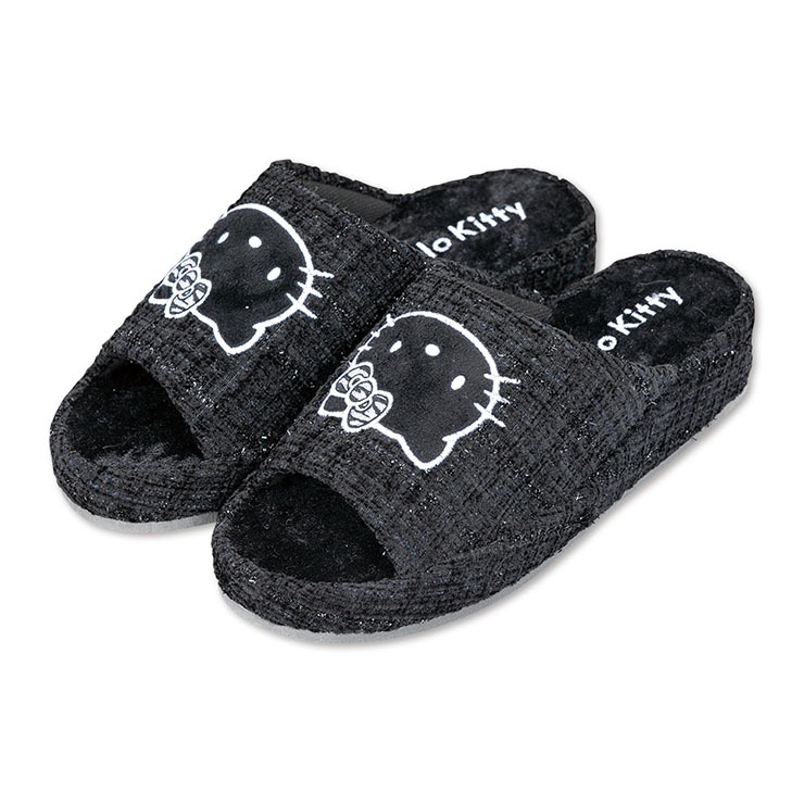 ゼブラ柄キティのアップリケ刺しゅうが可愛い、ハイカットルームシューズです。