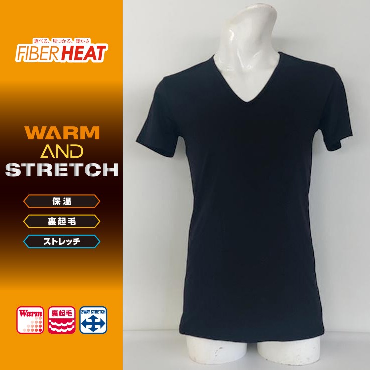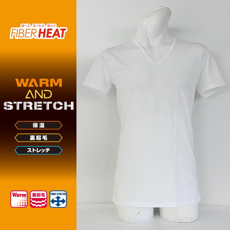 メンズ 半袖VネックインナーTシャツ(FIBER HEAT)