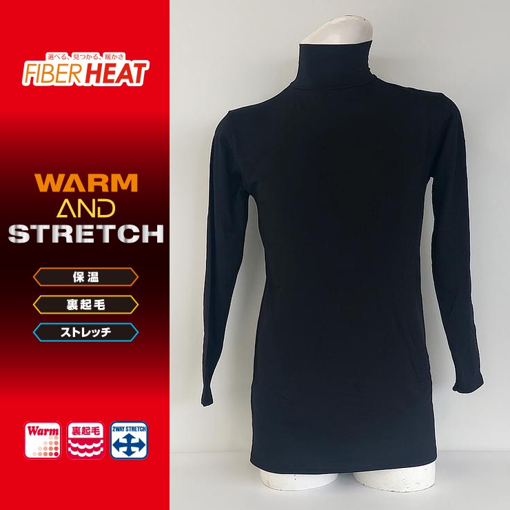 メンズ【M~4L】 長袖タートルネックインナーTシャツ(FIBER HEAT)