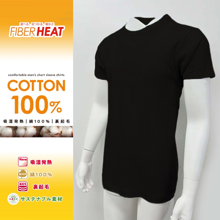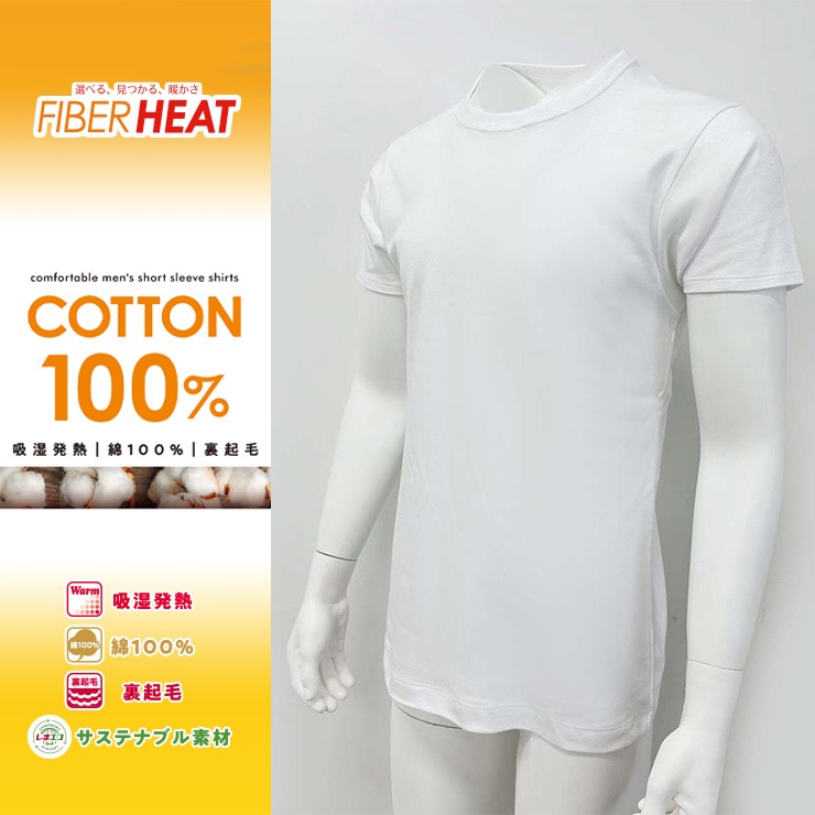 メンズ【M~LL】 半袖クルーネックインナーTシャツ(FIBER HEAT)