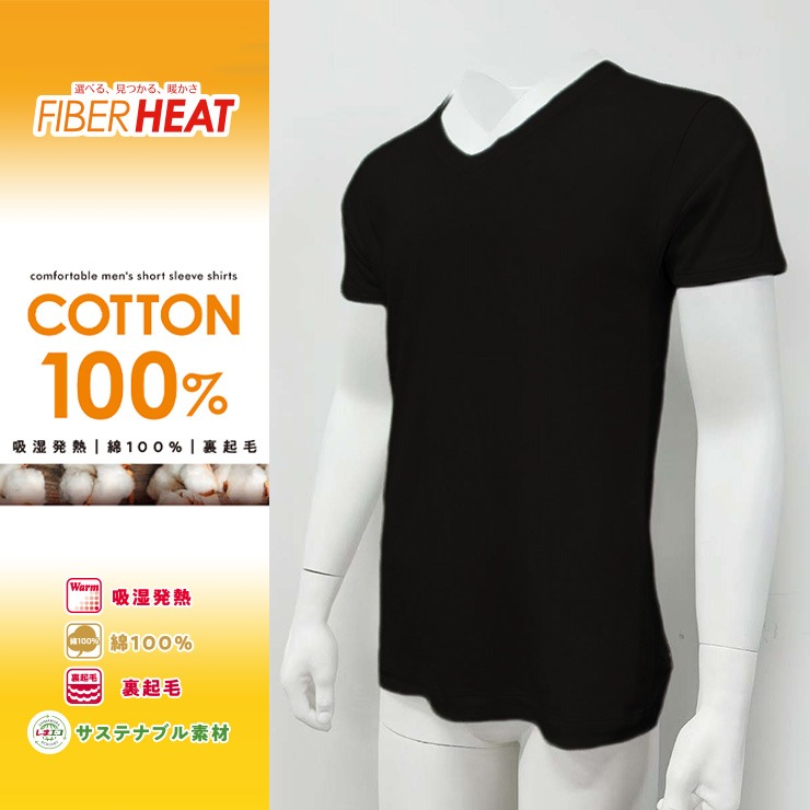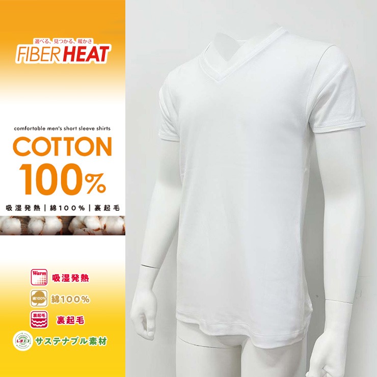 メンズ【M~LL】 半袖VネックインナーTシャツ(FIBER HEAT)