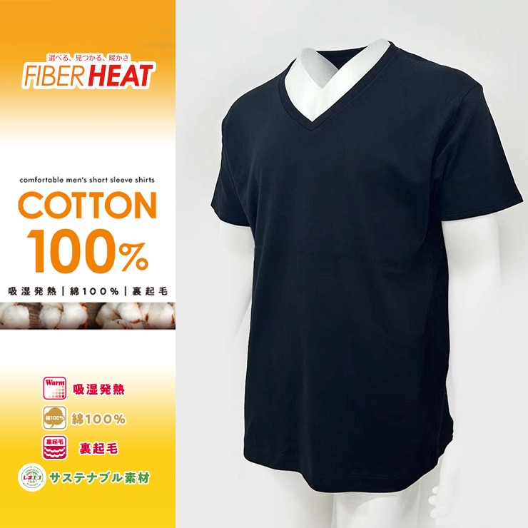 メンズ【3L・4L】 半袖VネックインナーTシャツ(FIBER HEAT)
