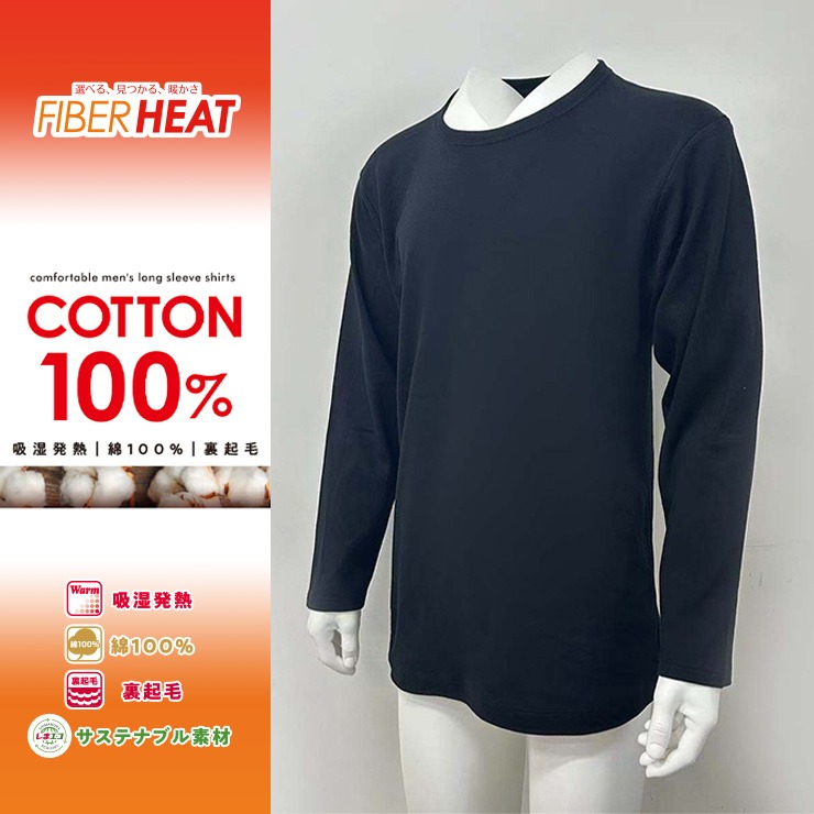 メンズ【3L・4L】 長袖クルーネックインナーTシャツ(FIBER HEAT)