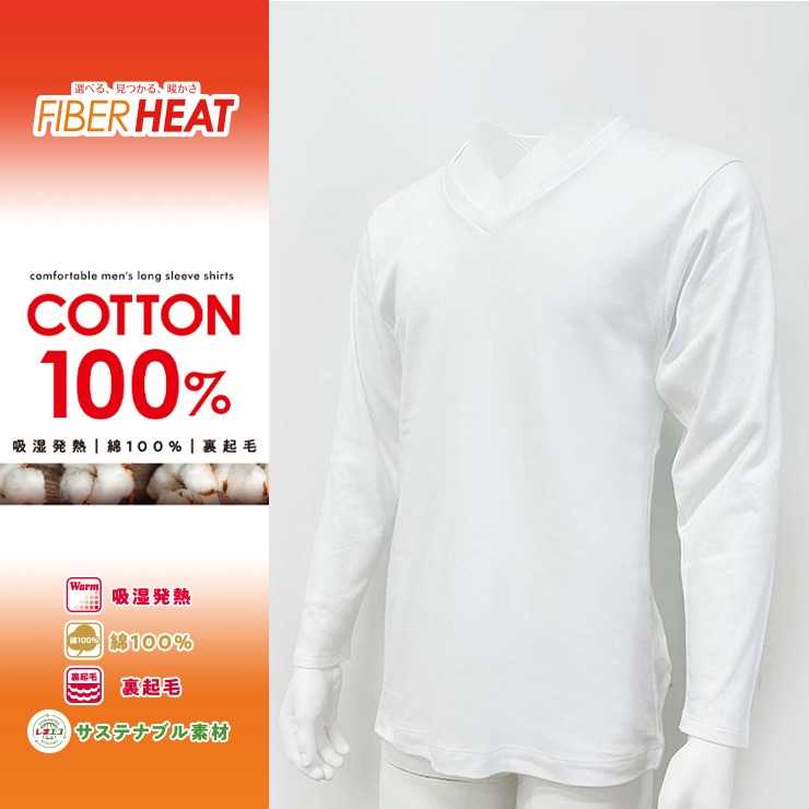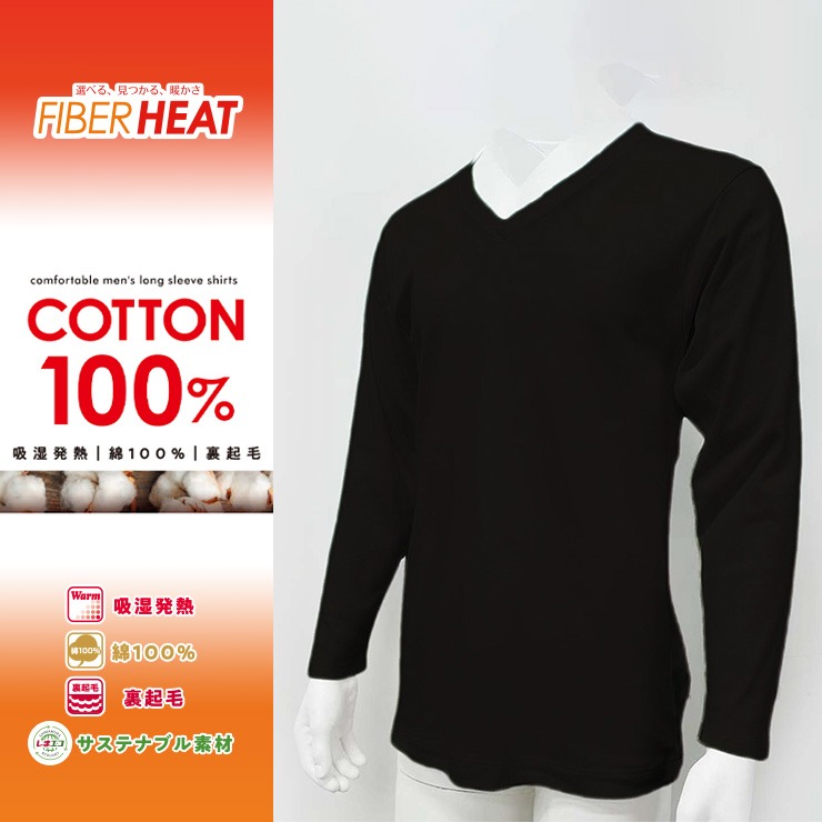 メンズ【M~LL】 長袖VネックインナーTシャツ(FIBER HEAT)