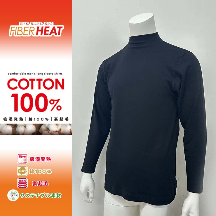 メンズ【M~LL】 長袖タートルネックインナーTシャツ(FIBER HEAT)