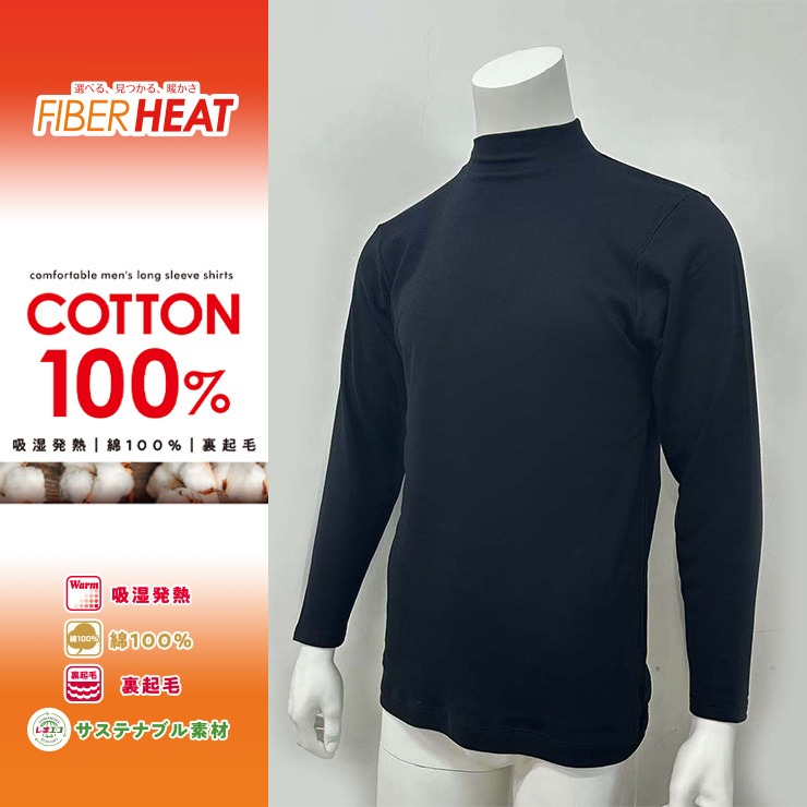 メンズ【M~LL】 長袖モックネックインナーTシャツ(FIBER HEAT)