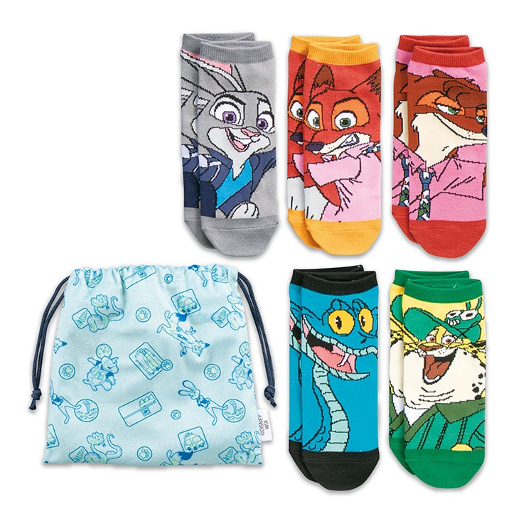 大人気!ディズニー映画「ズートピア2」デザインの5足組巾着入りソックスが登場!!