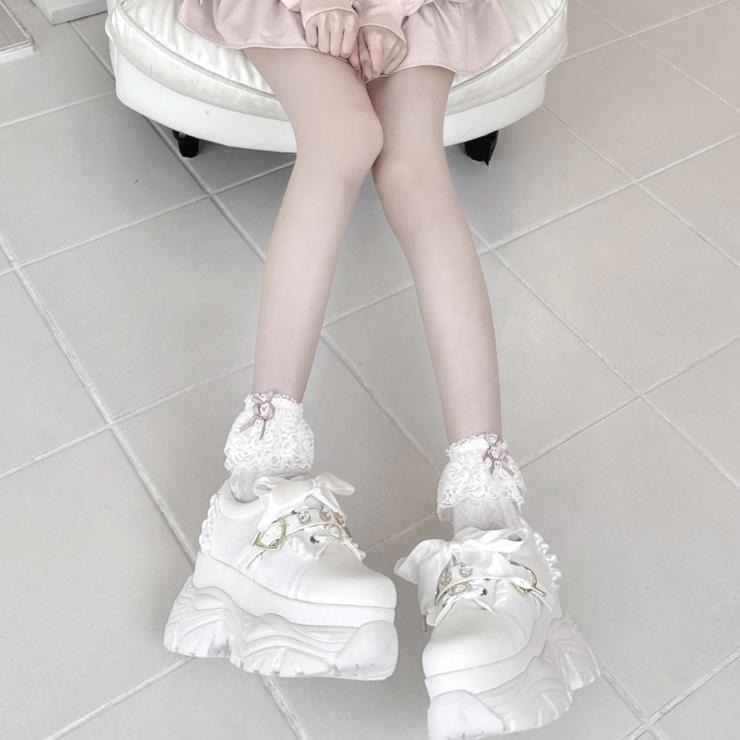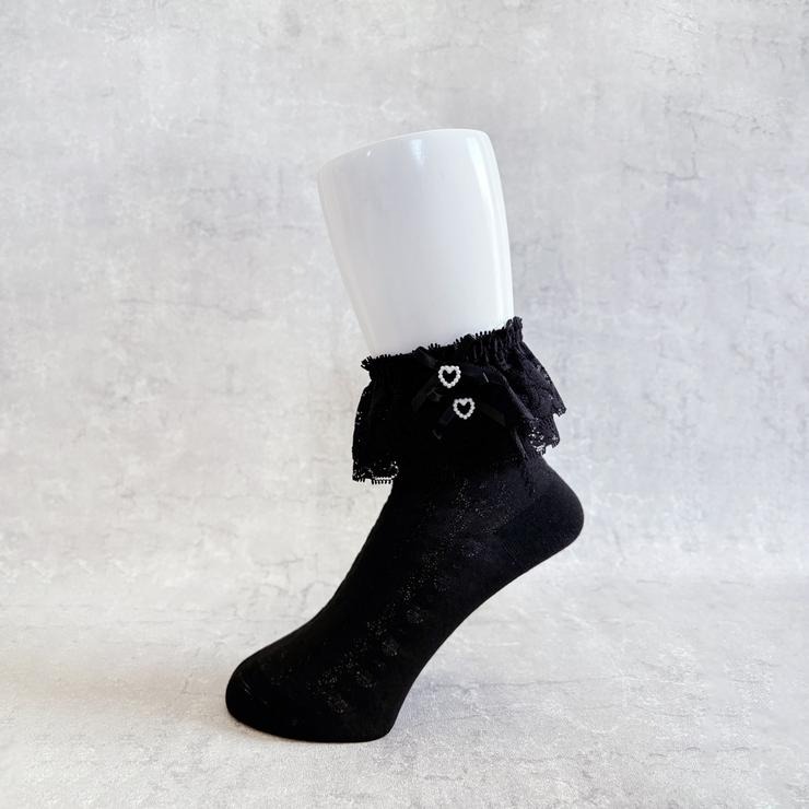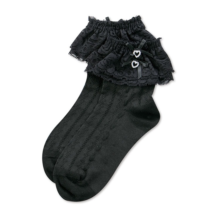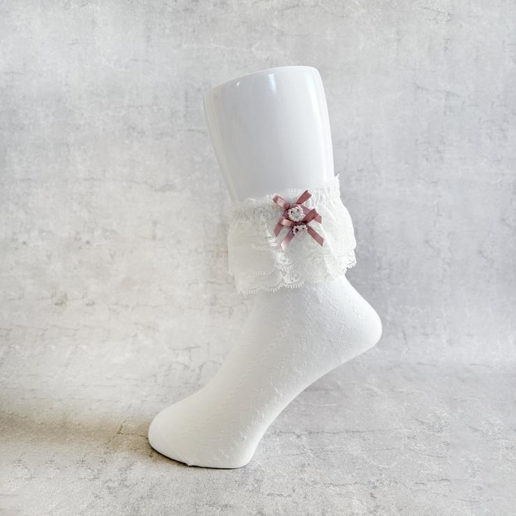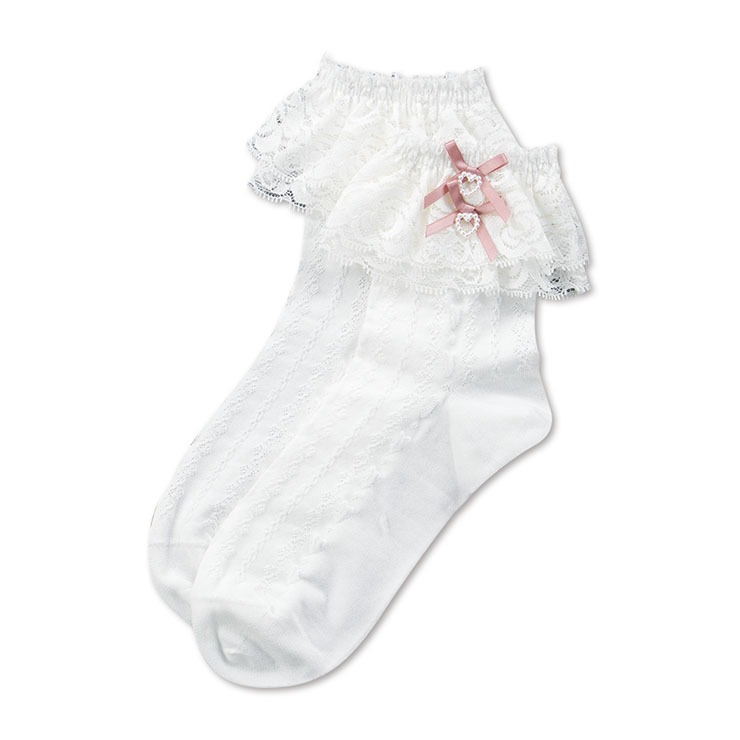 履き口のレースと2連リボンモチーフが特徴のクルーソックスです◎