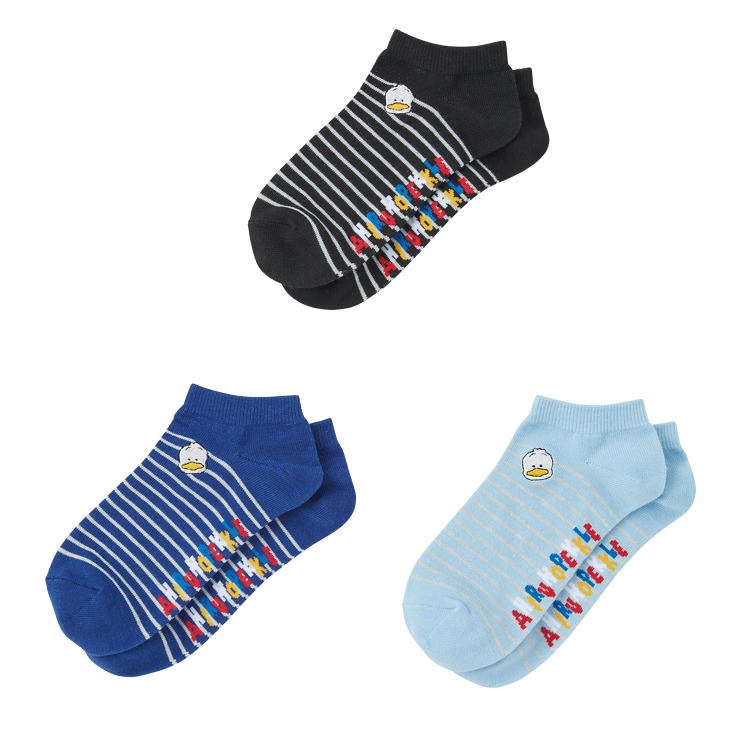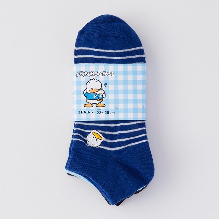 あひるのペックルの刺しゅうがかわいい3足組ソックスが新登場!