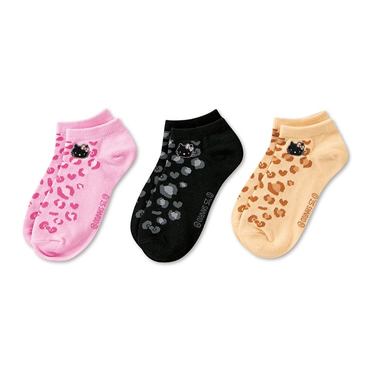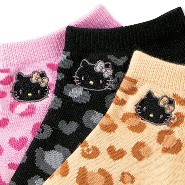 おしゃれなヒョウ柄に真っ黒なハローキティが刺しゅうされた3足組ソックスが新登場!