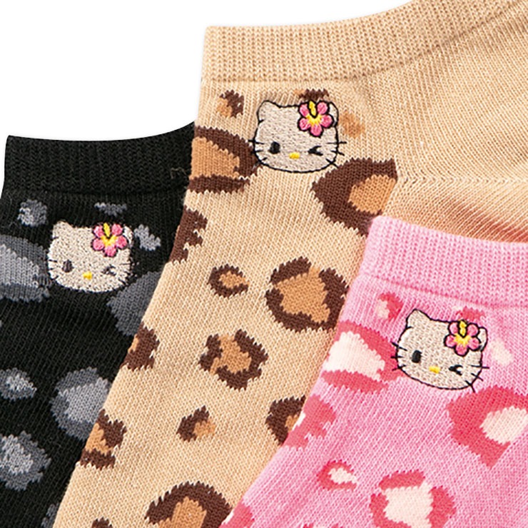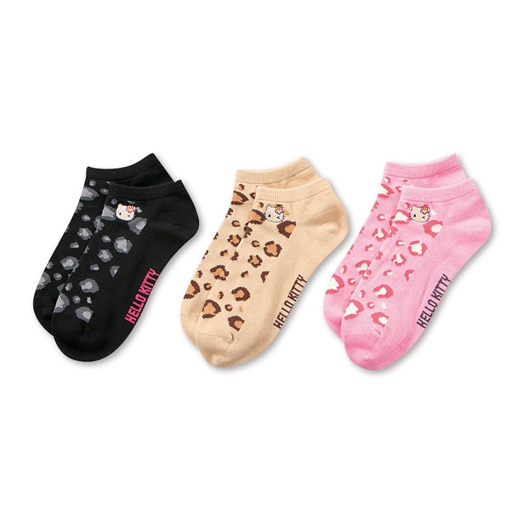 ヒョウ柄ソックスに、こんがり日焼けしたハローキティの刺しゅうがとっても可愛いデザインです♪