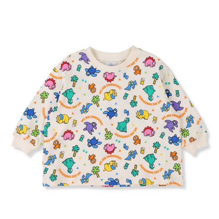 『ウィアーダイナソアーズ!』のキャラクターがいっぱいのかわいい総柄プリント使いになっています。