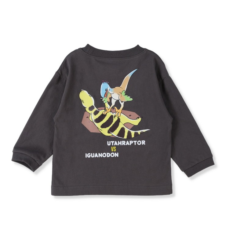 カッコいい恐竜プリントのほかに、胸元にはかわいい恐竜の刺繍が入っています。