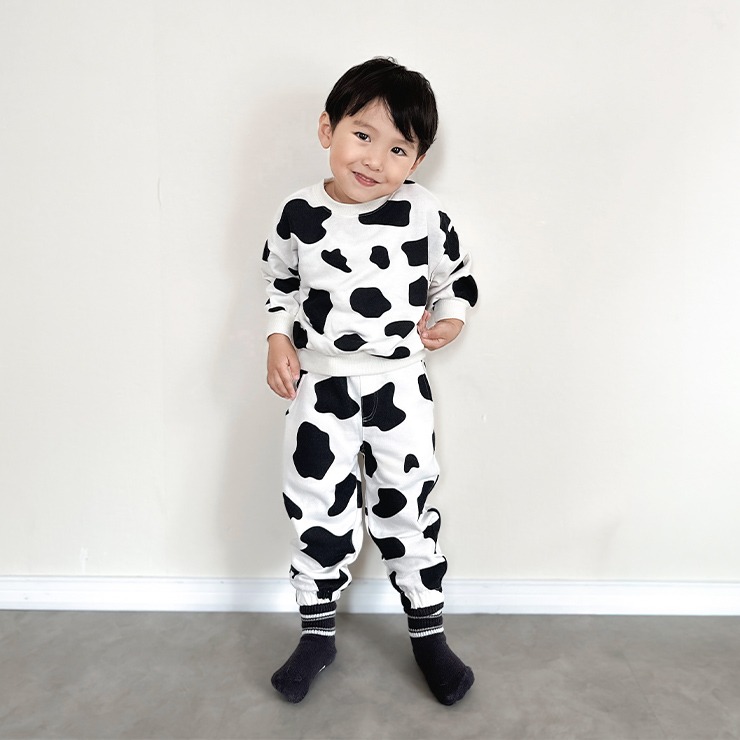 カウ柄が目を惹く綿混の裏毛素材を使用したトレーナーです。
