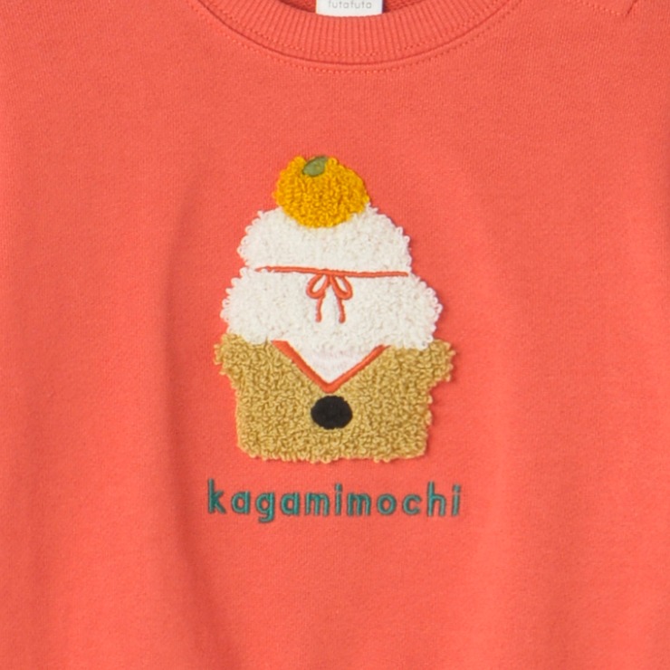 ぽこぽことしたサガラ刺しゅうの鏡餅デザインがかわいいです。