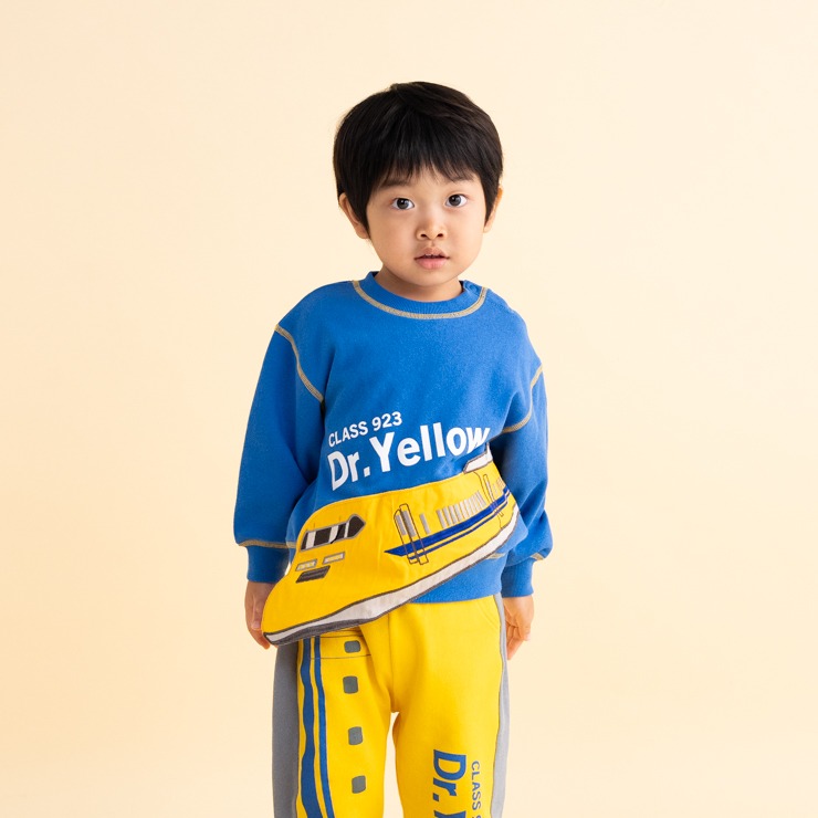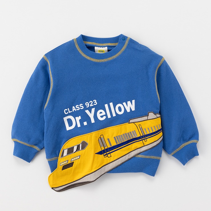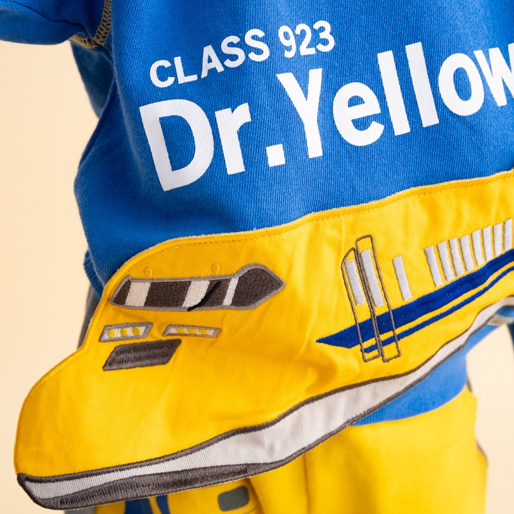 ドクターイエローが飛び出しているようなツイルのアップリケデザインになっています。