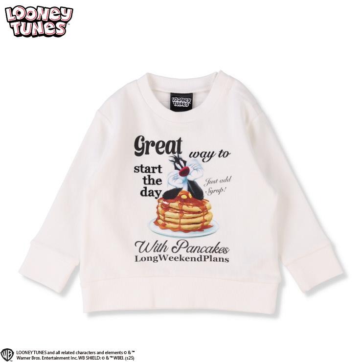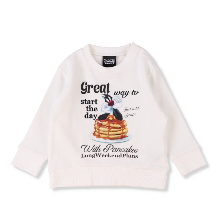 LOONEY TUNESのプルオーバーです。シルベスターとリアルなパンケーキのイラストがプリントされています。