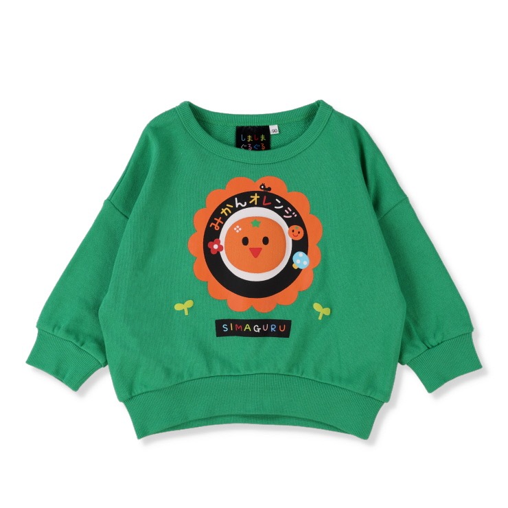 「いっしょにあそぼ」シリーズの大人気絵本、『みかんオレンジ』の発泡プリントと鮮やかな色使いが目を引くプルオーバーです。