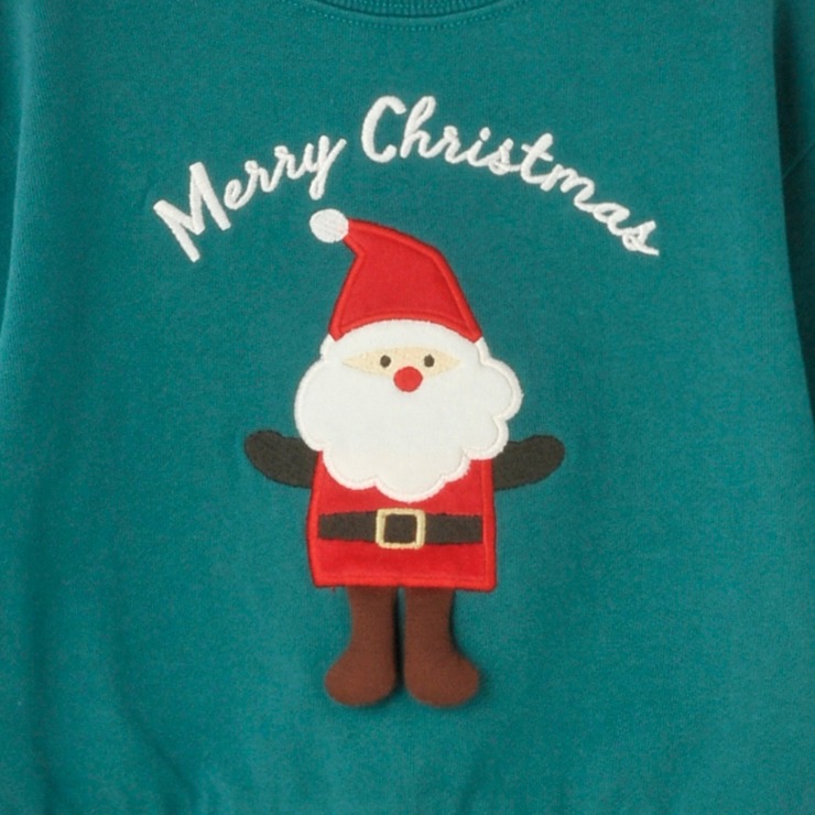 サンタクロースをモチーフにしたベロア素材のアップリケデザインがかわいいです。