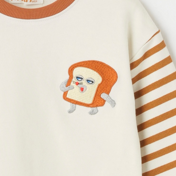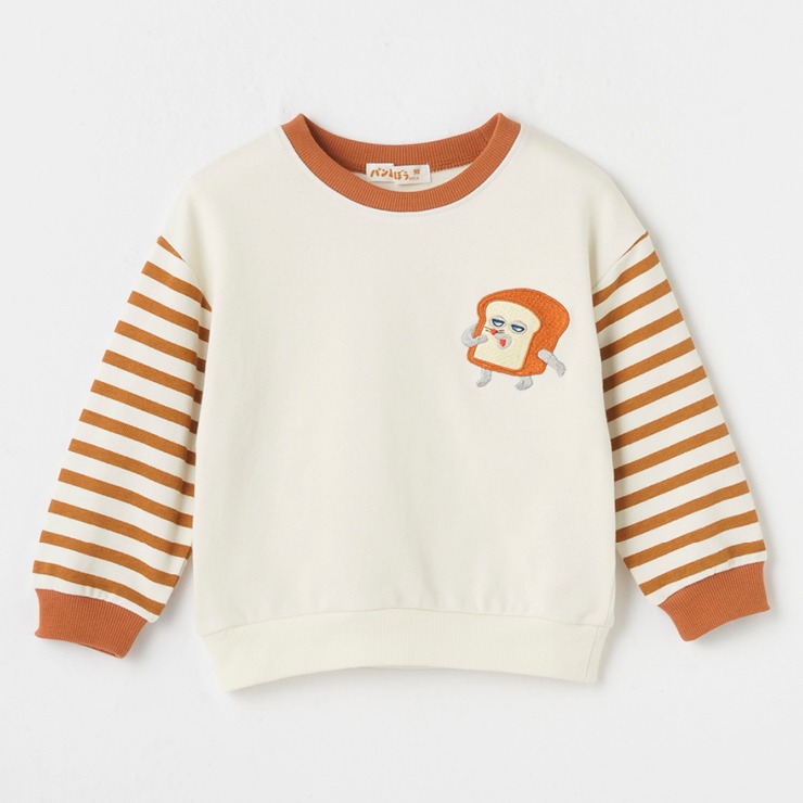 胸にパンどろぼうの刺しゅう、袖はボーダー柄にしました。
