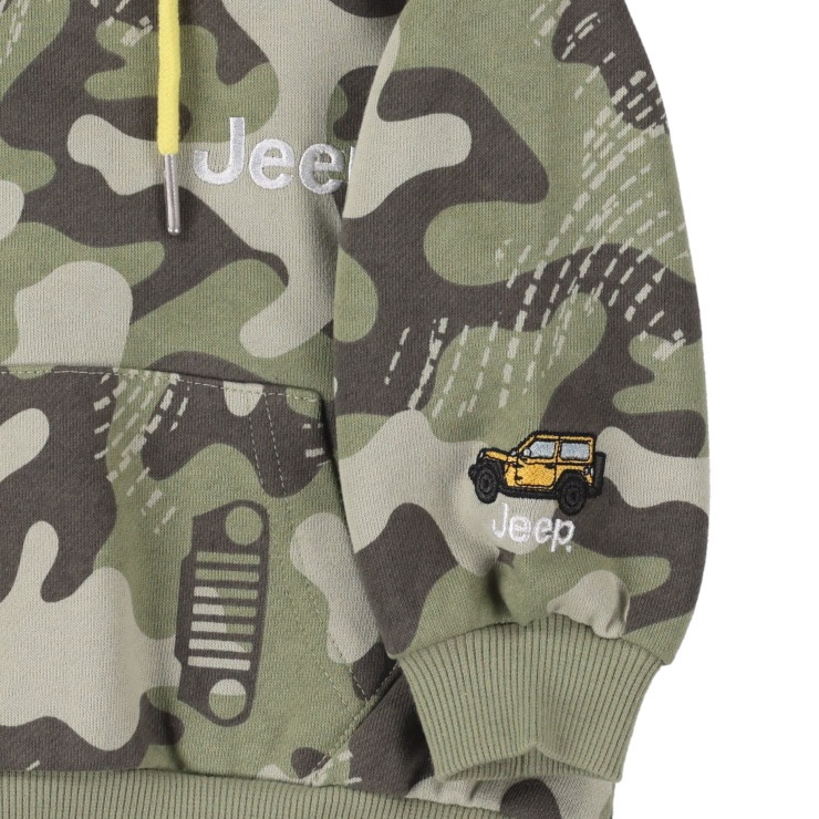 胸のロゴや袖口の車の刺しゅうなど、Jeepブランドならではの遊び心あるデザインが魅力的です。