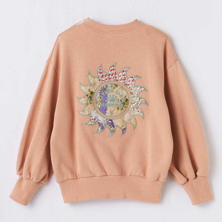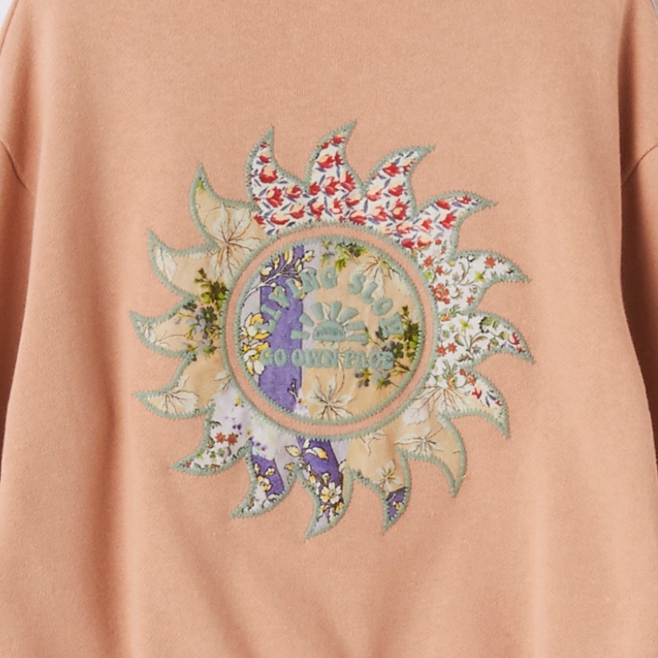 スポーティーな首元のガゼットに太陽モチーフのアップリケデザインがおしゃれです。