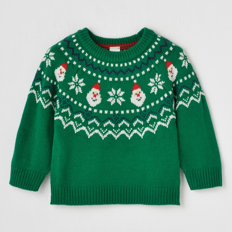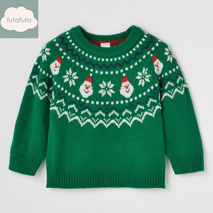 サンタクロースのモチーフを使用した編み柄のデザインがかわいいです。