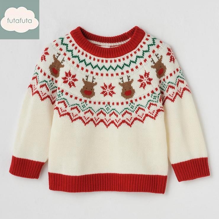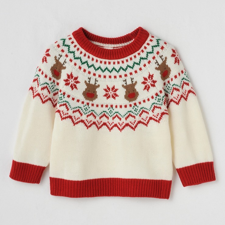 トナカイのモチーフを使用した編み柄のデザインがかわいいです。