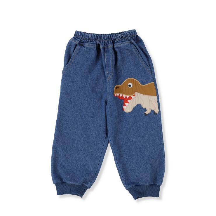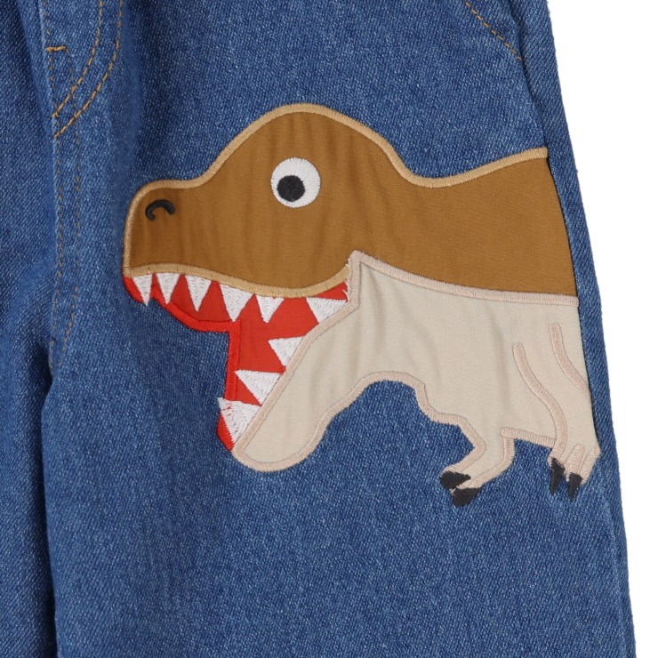 人気のデニム素材にティラノサウルスのアップリケが!!