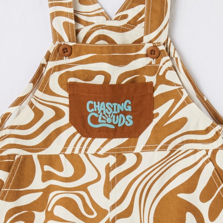 ナチュラルなブラウンカラーの総柄プリントにポケットの刺しゅう使いがアクセントになっています。
