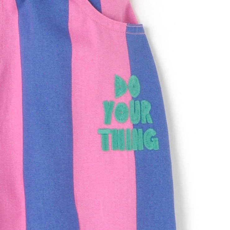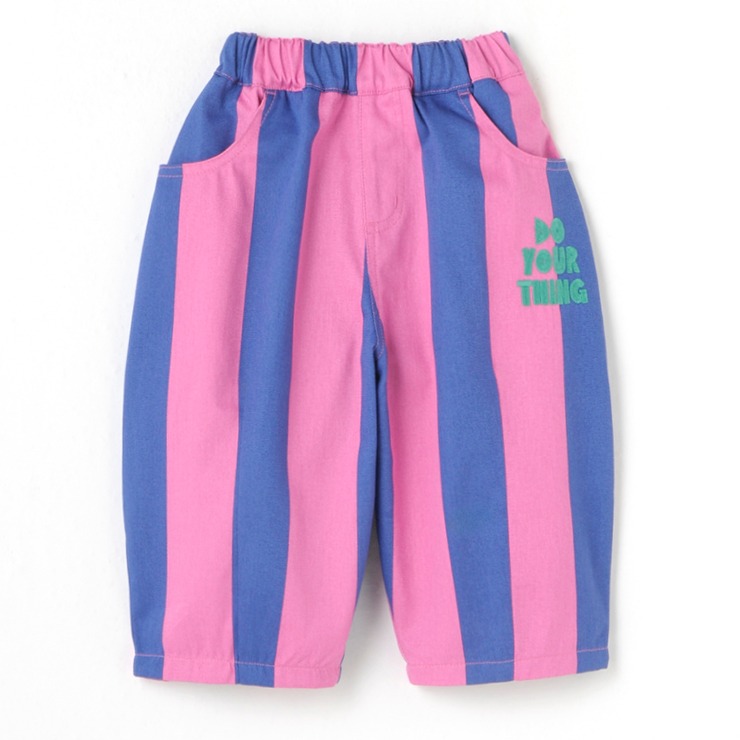 カラー使いがかわいい太いストライプ柄にロゴ刺しゅうがポップなアクセントになっています。