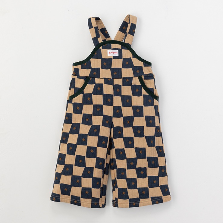 中綿入りのキルティング仕様であたたかみのあるサロペットです。