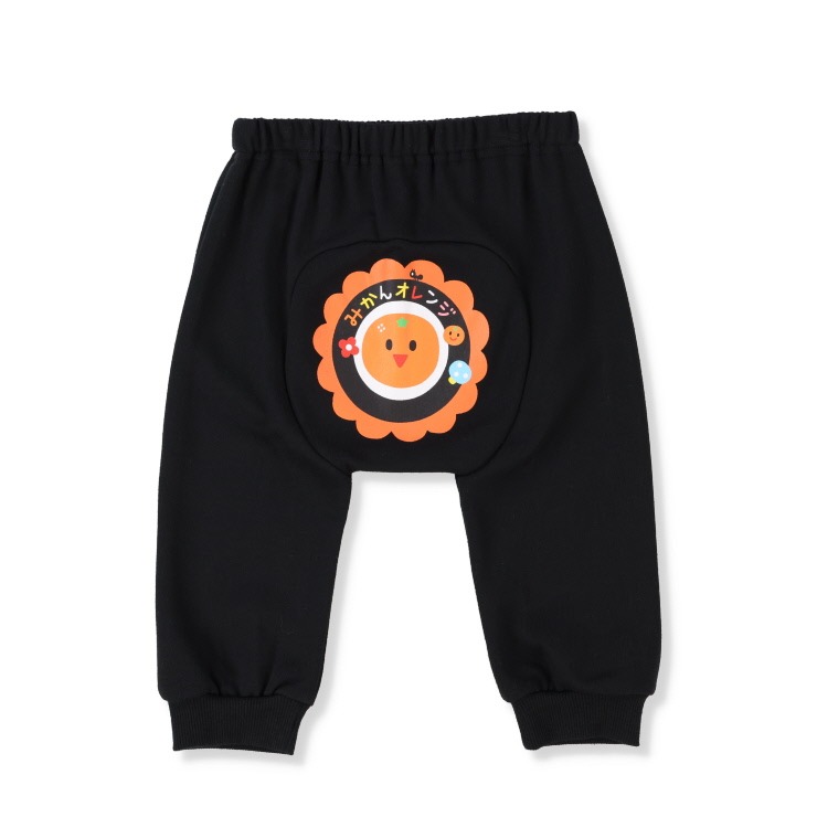 「いっしょにあそぼ」シリーズの大人気絵本、『みかんオレンジ』がお尻にプリントされた形もかわいいモンキーパンツです。