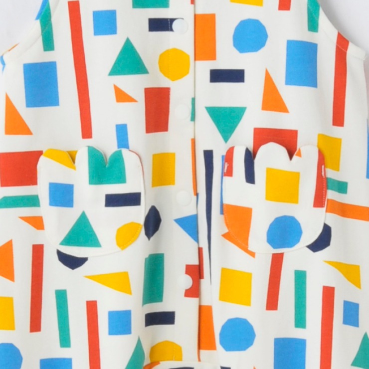 カラフルでポップな総柄プリントにチューリップのポケットデザインがかわいいです。