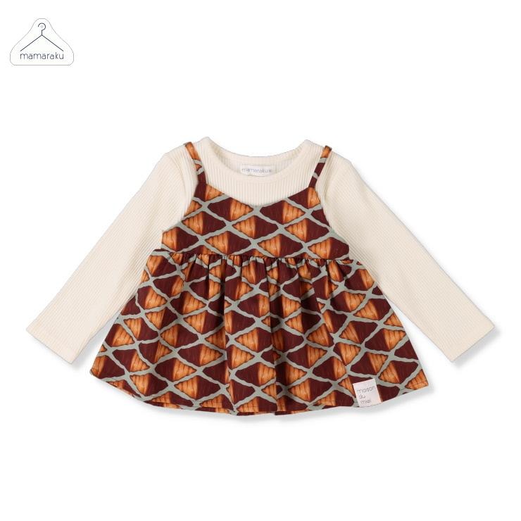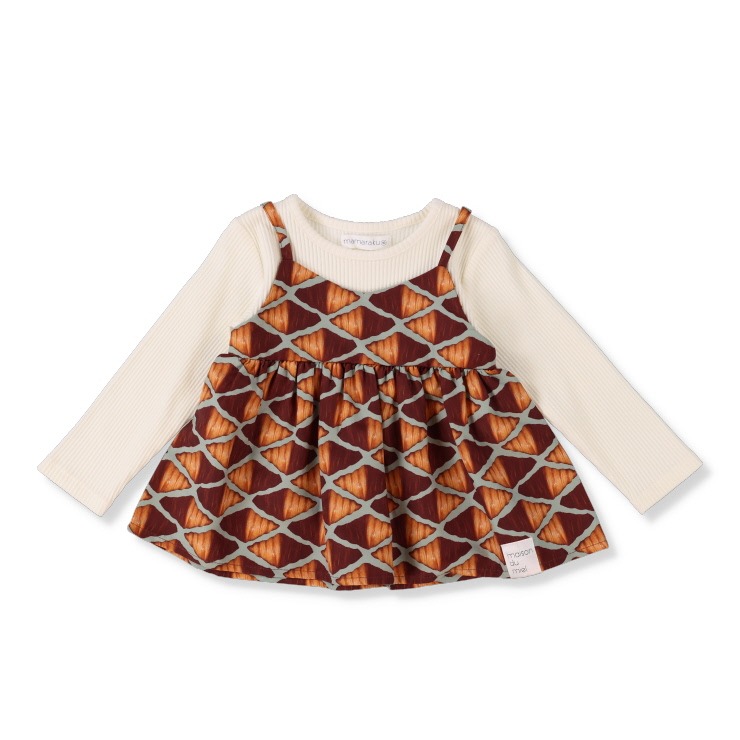 おいしそうなクロワッサンをプリントした重ね着風のトップスです。