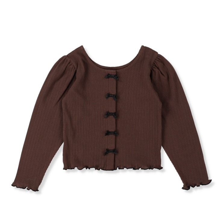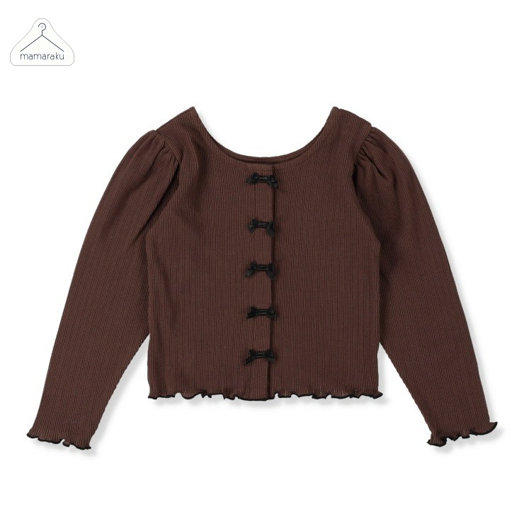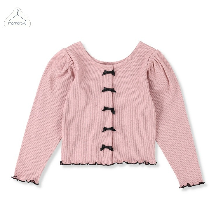 リボンとメローが差し色になったガーリーなカーディガンです。
