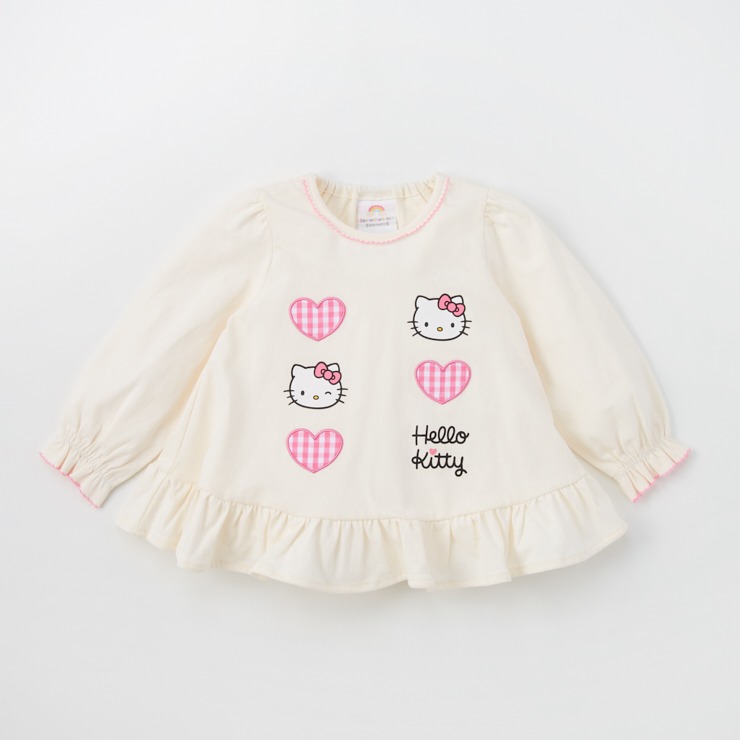 「キティ」のプリントとハートのアップリケのガーリーなデザインになっています。