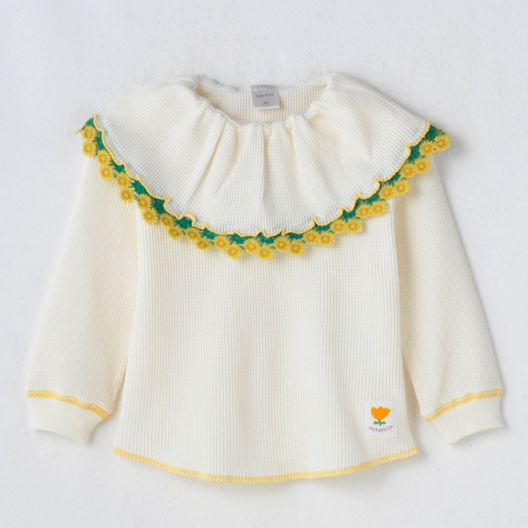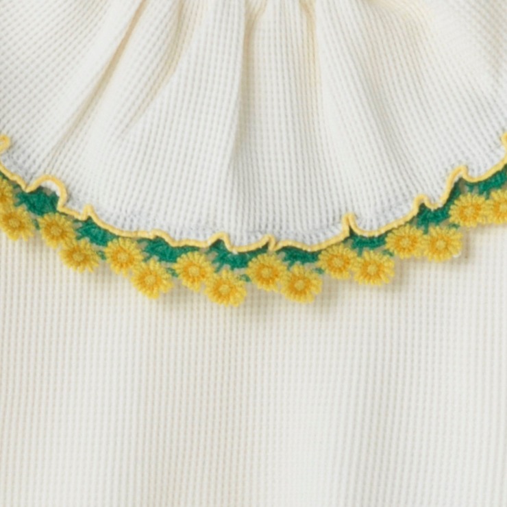 大きなフリルの衿にデザインのあるレースがついていてかわいいです。