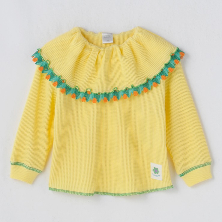大きなフリルの衿にデザインのあるレースがついていてかわいいです。