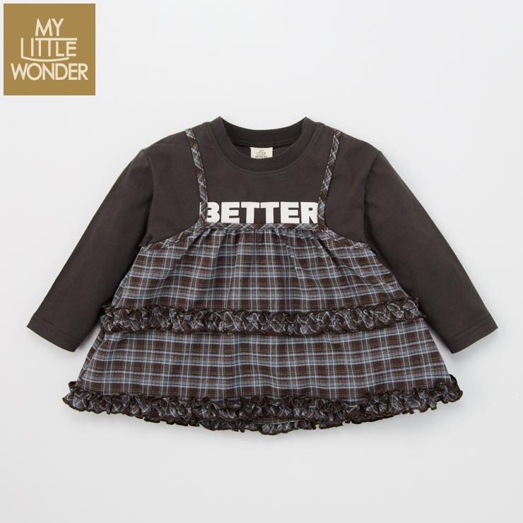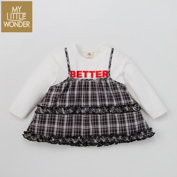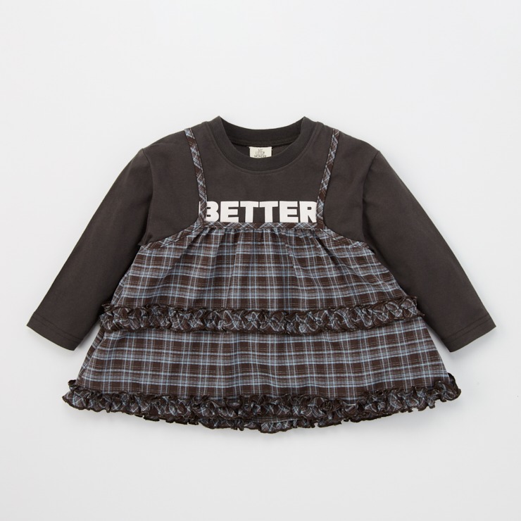長袖Tシャツとチェック柄キャミソールのフェイクレイヤードデザインです。