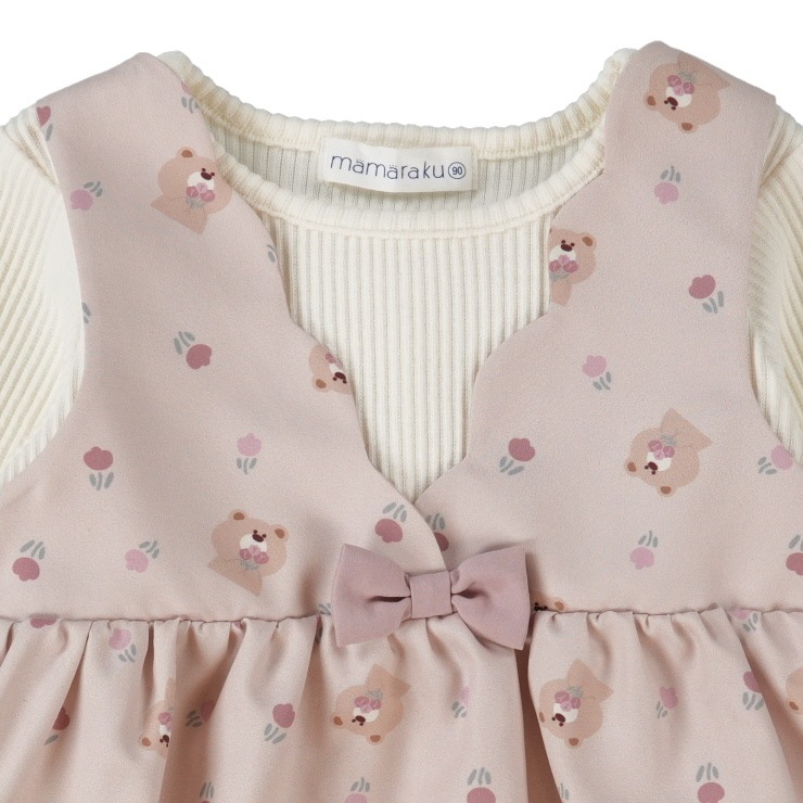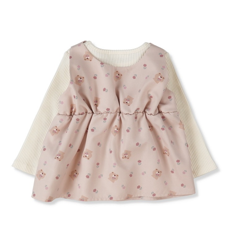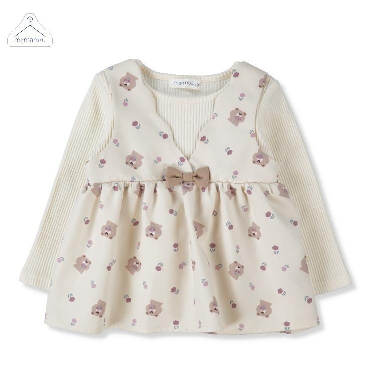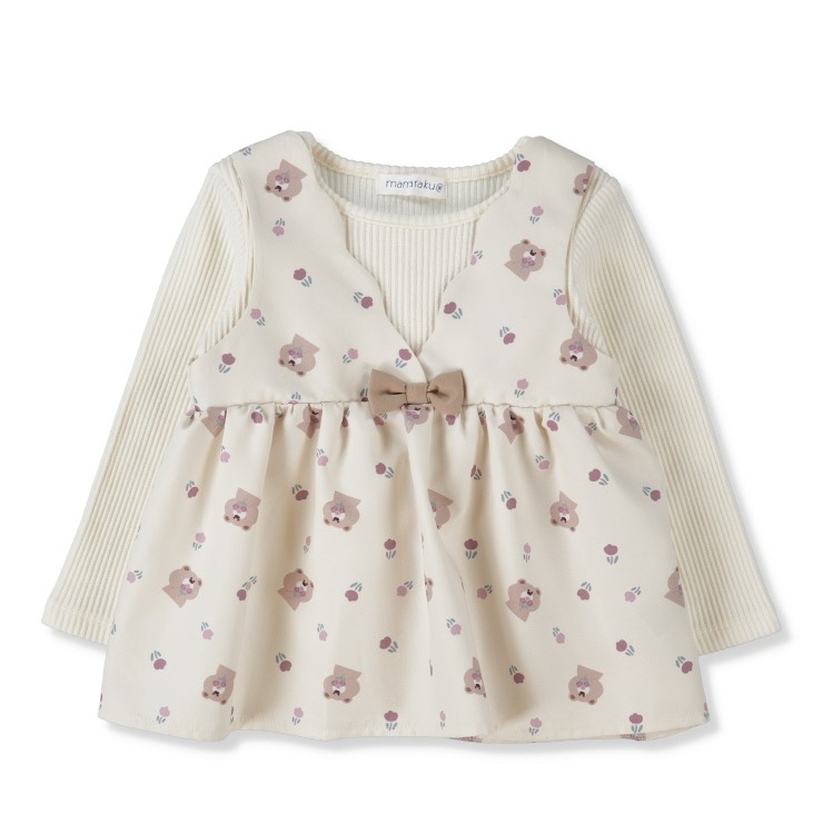 クマの総柄プリントがかわいい重ね着風のトップスです。